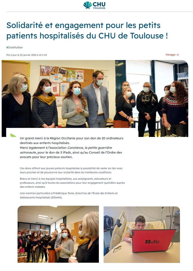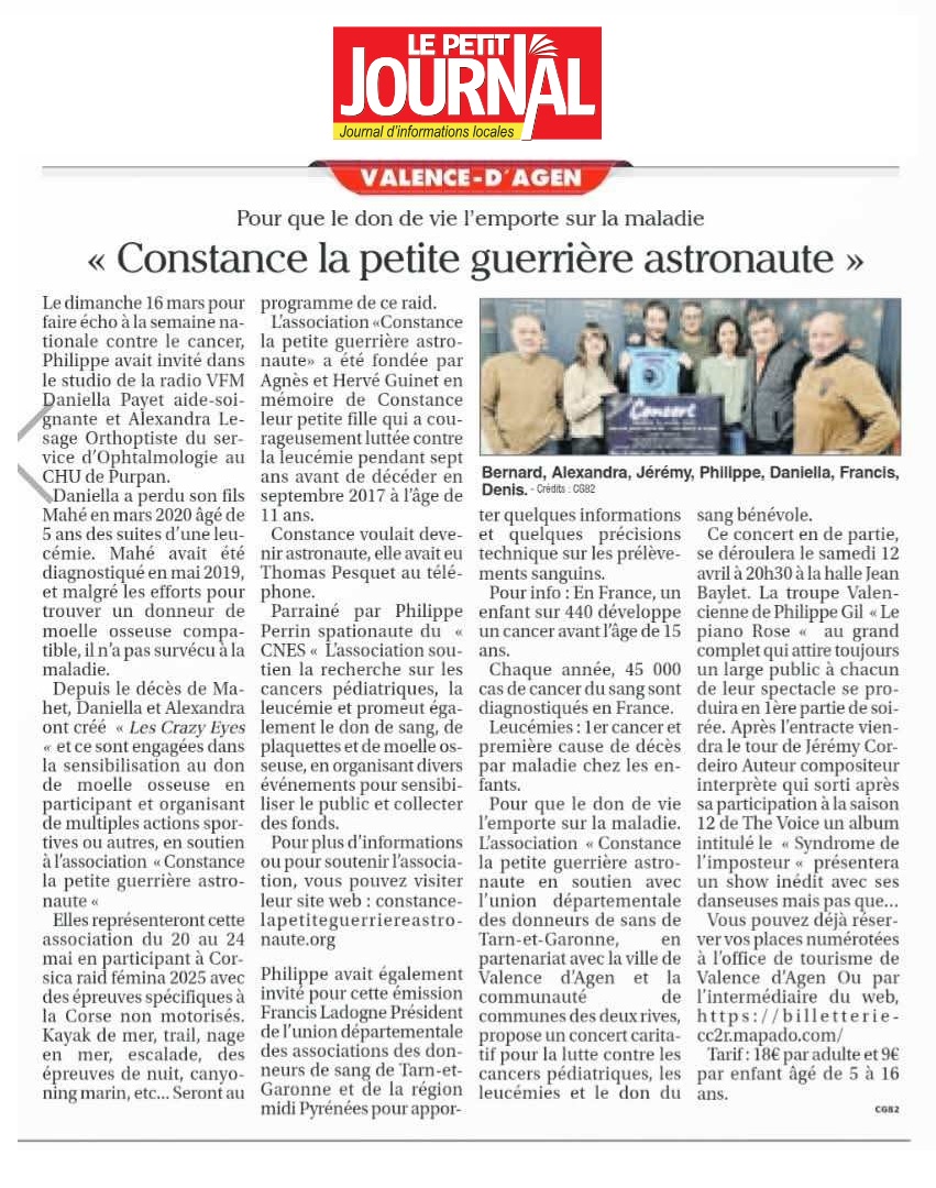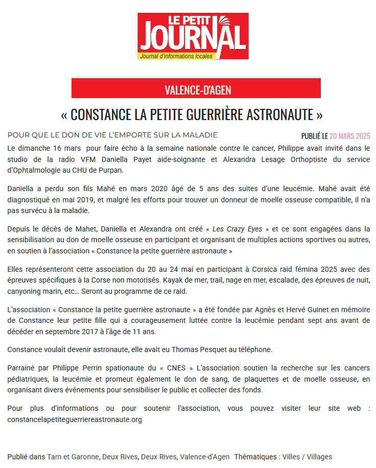 Retrouvez sur cette page la revue de presse de l'Association Constance la Petite Guerrière Astronaute depuis sa création en 2017