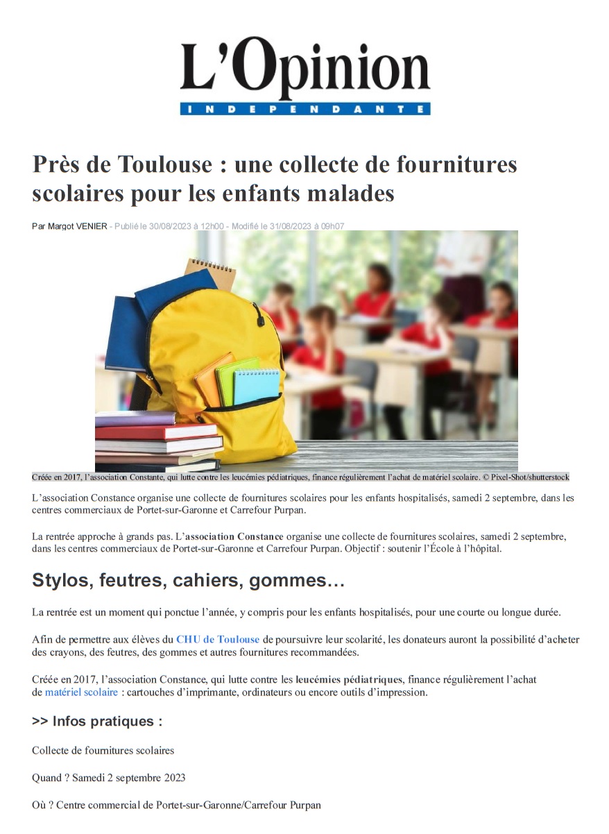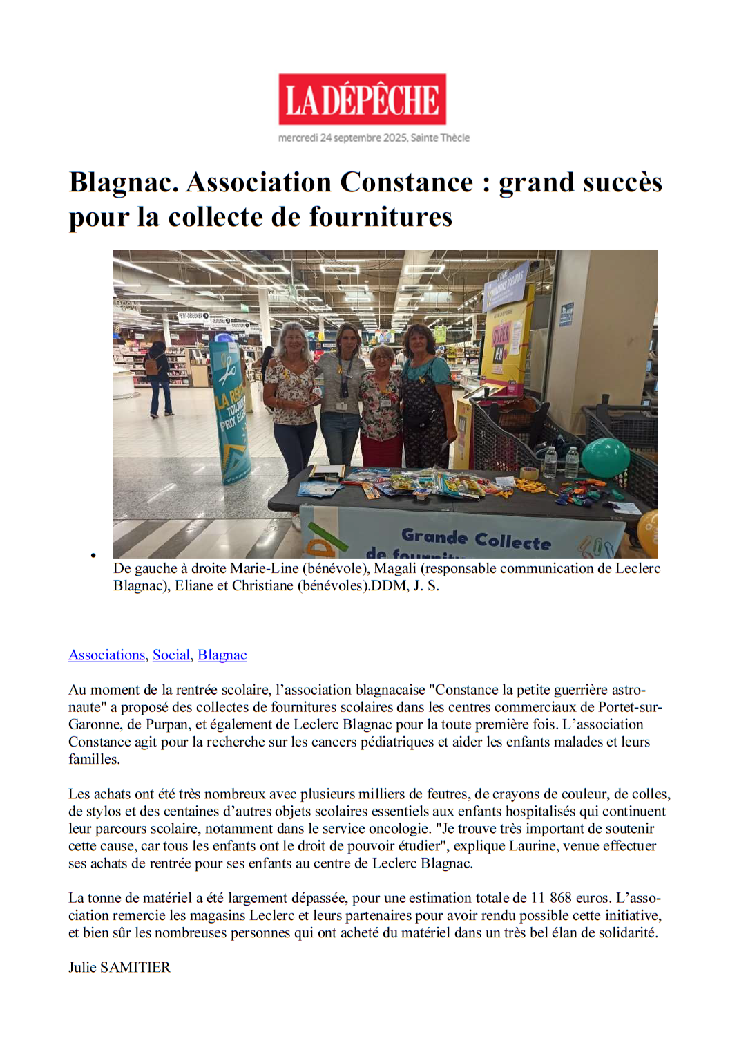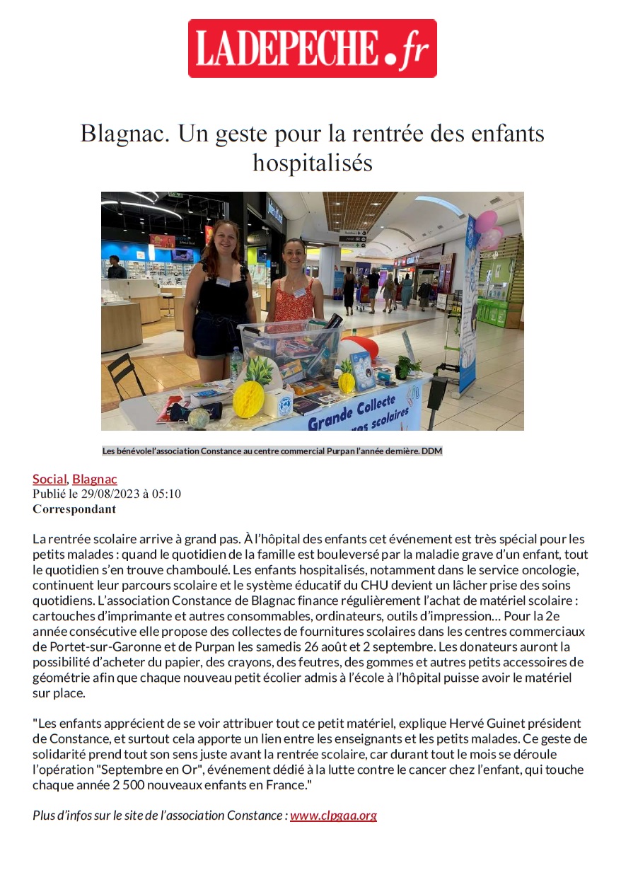 Article le Depeche Collecte Ecole à l'hopital du 25 Aout 2022