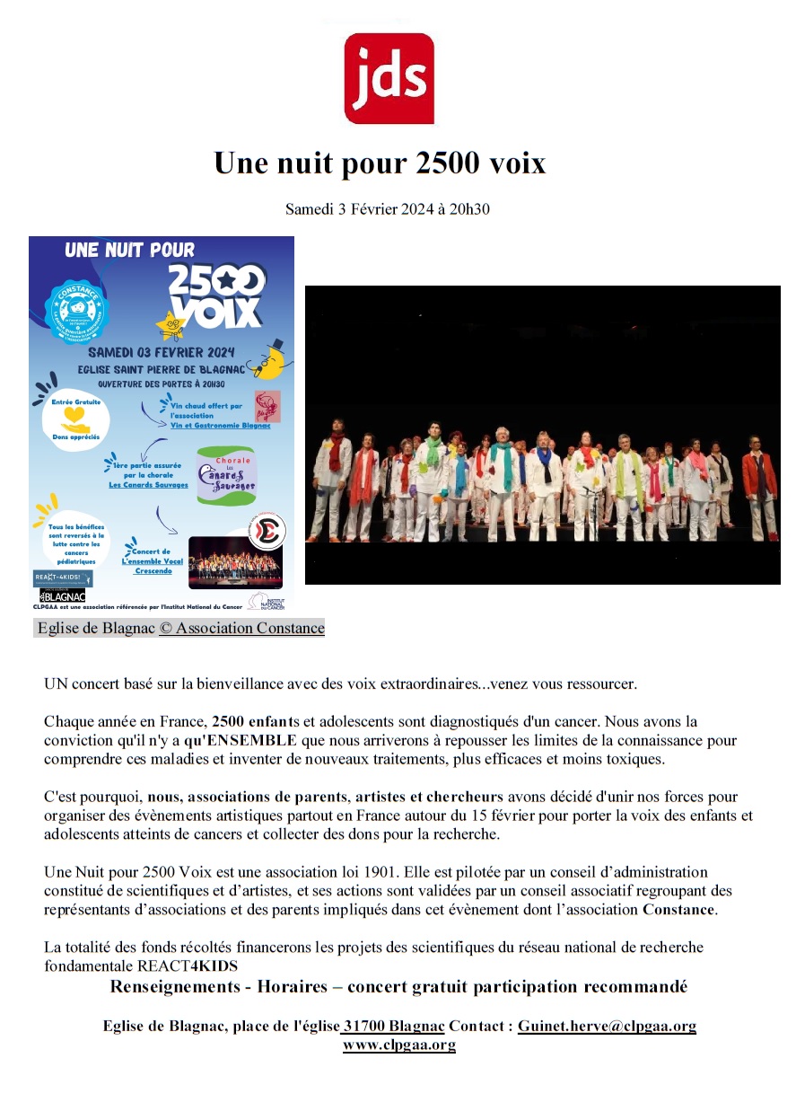 Article du JDS spectacle "2500 voix" 3 février 2024