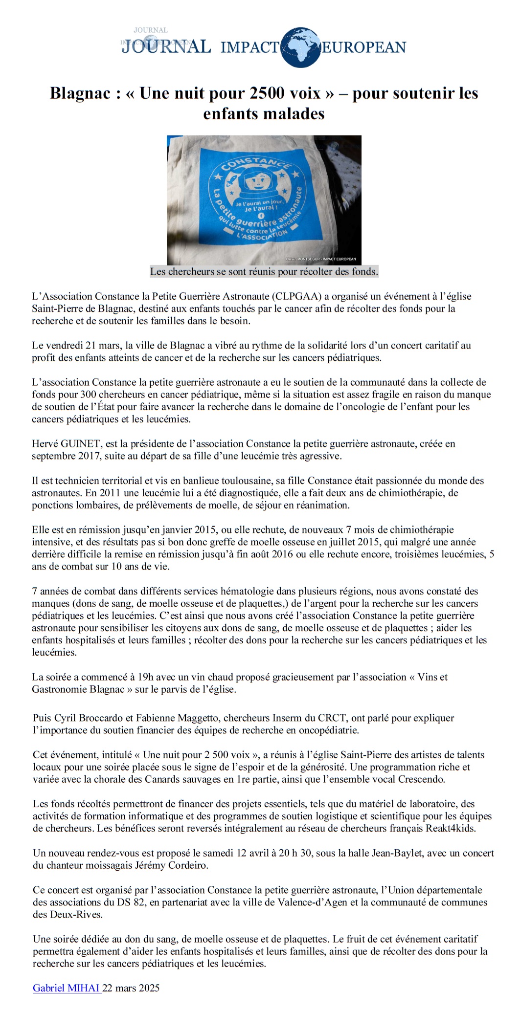 Article Le JOURNAL IMPACT EUROPEAN du 22 Mars 2025