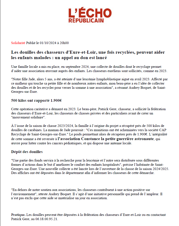 Publié le 13 Janvier dans l'Echo Republicain Chartres