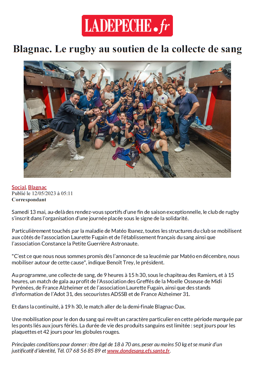 Publié le 04/05/2020 Journée don de Vie Blagnac