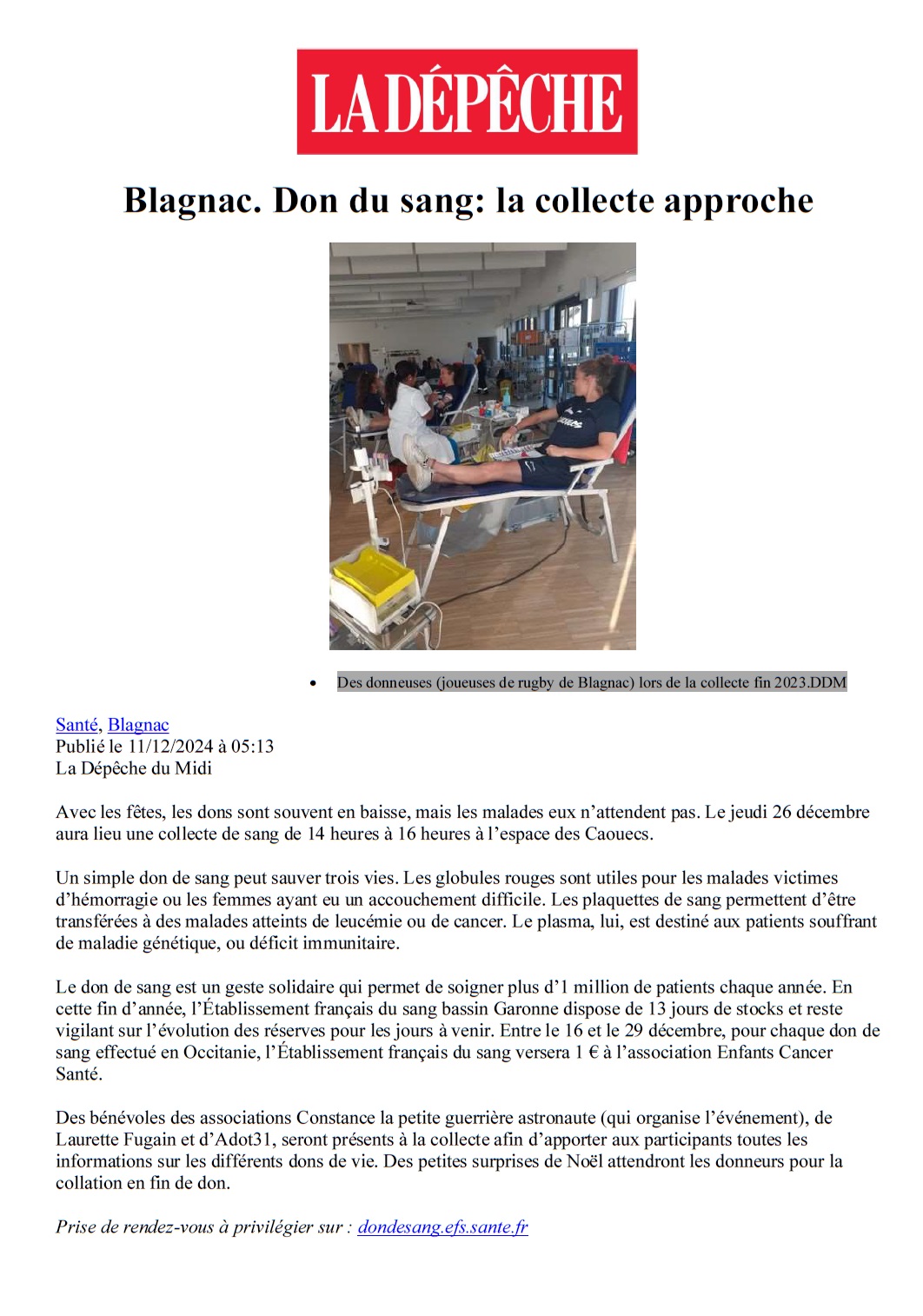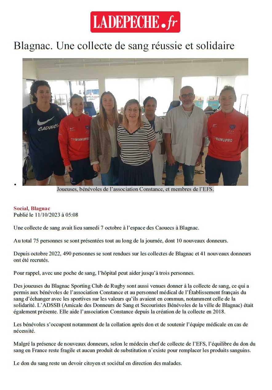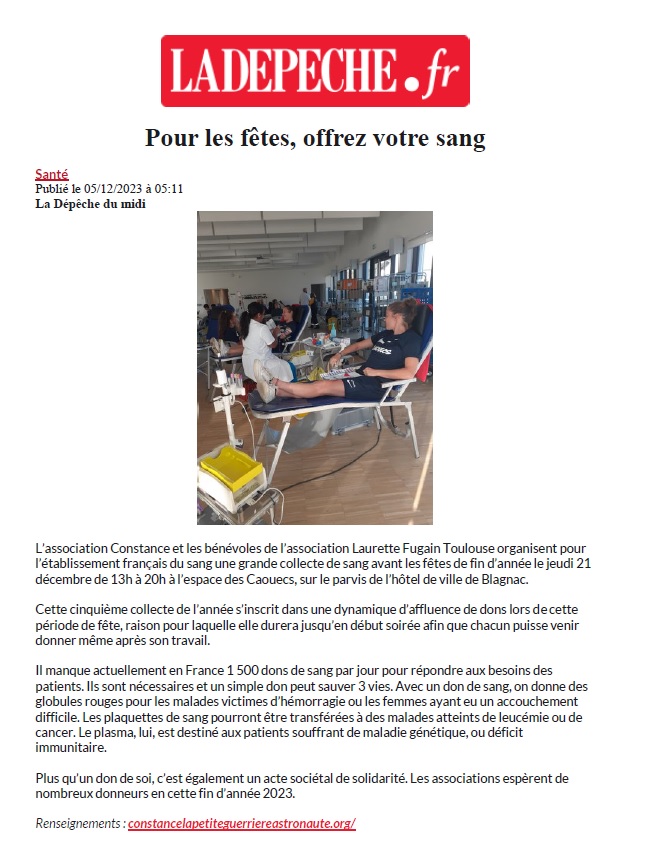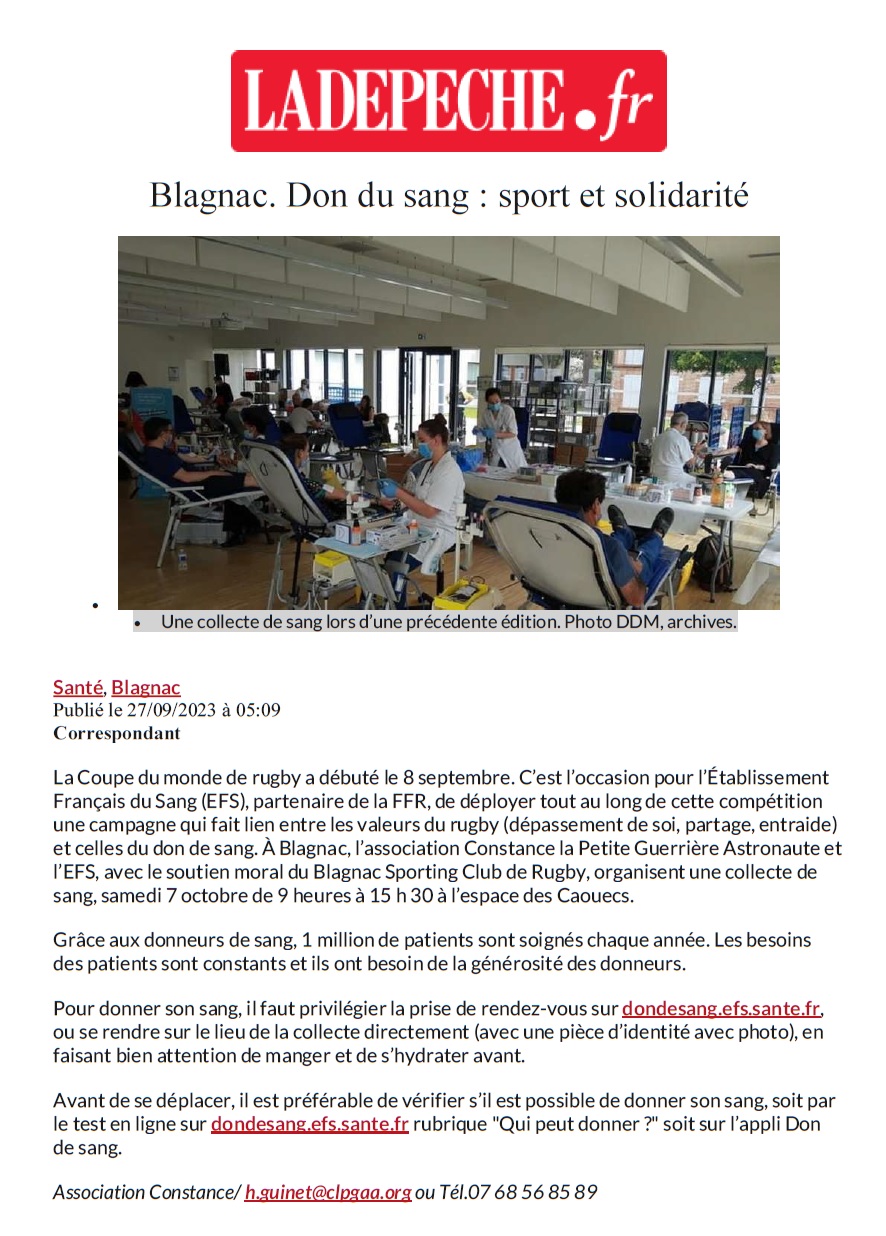 La dépêche du Midi Août 2020, Journée Don de Vie