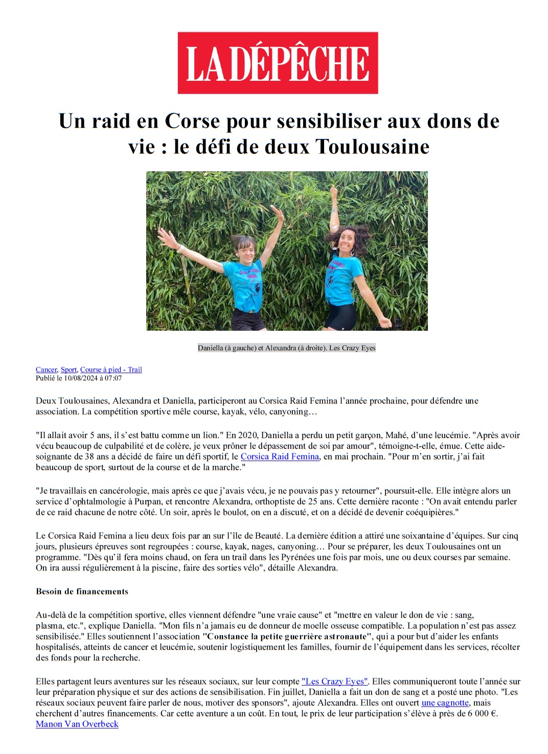 Article LA DEPECHE DU MIDI du 10 Juin 2025