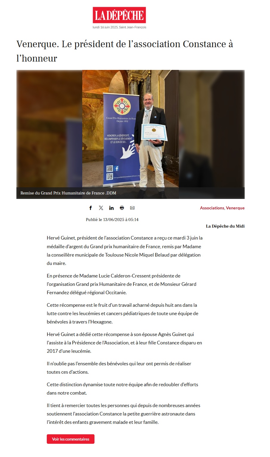 Article LA DEPECHE DU MIDI du 13 Juin 2025